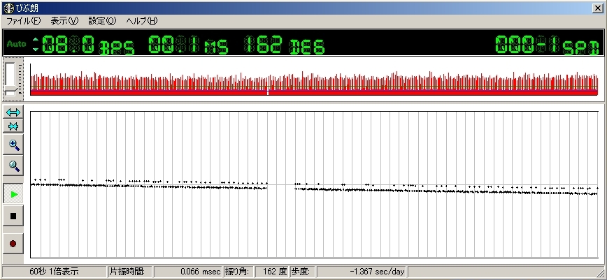でも、もしかしたら時計を腕にはめたまま歩度測定するなんて世界初?等とくだらない事を考えつつ期待に胸を膨らませ実際に測定してみると
